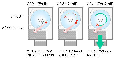 アクセス時間とは、制御装置がデータの入出力に関する要求を出してから、データの転送が完了するまでの時間のこと。