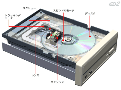 光磁気ディスクでは、データの書き込みは、光で記録面を熱して、磁気で磁化して記録する。