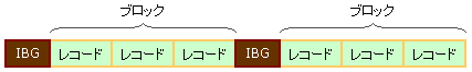 磁気テープは、1プロック記録するのに「IBG」(Inter Block Gap)を含める必要があります。IBGはブロックを識別するためのものです。1ブロックには複数のレコードが記録されます。