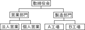 ひとつの指令命令系統を持つ階層構造の組織形態です。