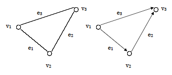 この図の場合、e1=(v1,v2),e2=(v2,v3),e3=(v1,v3)と表記します。一般に、e=(vi,vj)のvi,vjをそれぞれ端点と言います。