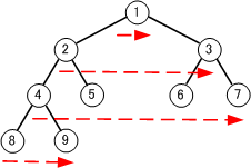 ルートから順に深くなるように走査して、一番深いところまで走査したら、また、上から順に深くなるように走査していく。