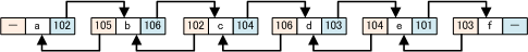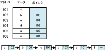 データは、数珠つなぎになっている。メモリ上では、順番に並んでいるとは限らない。
