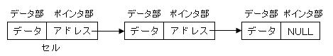 線形リストはデータとポインタとが入ったノードまたはセルと呼ばれる要素をポインタでつないだものである。