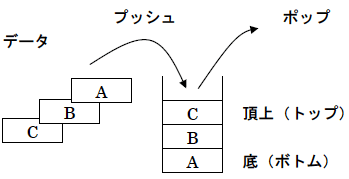 データは、後に入れたものが先に取りだされるLIFO方式です。