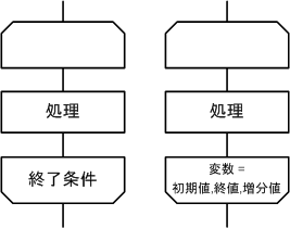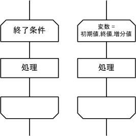 繰り返しの開始と終了を表す。 終了条件を入れる |