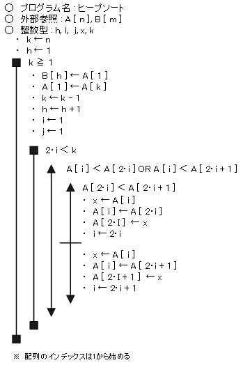 ヒープソートのフローチャート(擬似言語)