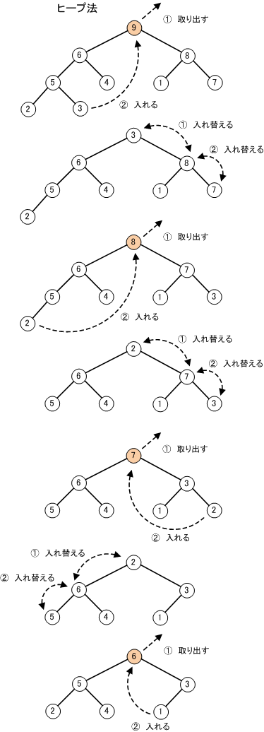 という処理を再帰的に行うことでヒープ構造が生成される。