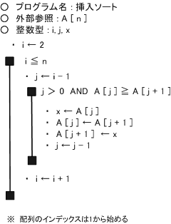 挿入ソートのフローチャート(擬似言語)