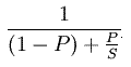 従来の計算時間を 1 とする。改良されたプログラムの計算時間は、改良と関係しない部分の計算時間(1 - P)と改良された部分の計算時間(P/S)の合計となる。全体の性能向上率は、従来の計算時間を改良されたプログラムの計算時間で割ったものであり、上の式はそれを表している。