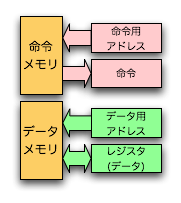 命令とデータのアクセスを分離してバスで転送するアーキテクチャ