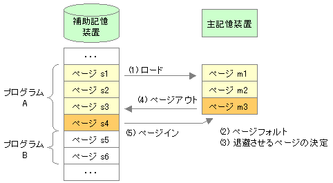 主記憶では、アドレスを実アドレスで管理するが、仮想記憶では、仮想アドレスとして管理する。そのため、プログラムを実行する場合、仮想記憶上の仮想アドレスを実アドレスに変換する必要がある。