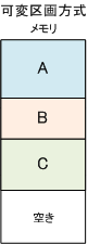 プログラムの大きさに応じて、メモリ上の区画の大きさも変えることでメモリを有効に利用する方式。