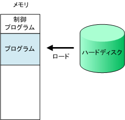 プログラムを実行するためには、補助記憶装置に記憶されているプログラムを主記憶装置に読み込む必要がある。これをロードという。