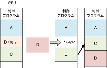 実記憶管理とは、主記憶に配置するプログラムを、効率的に配置し、主記憶を有効に利用する機能