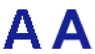周囲の画素との平均値演算などを施すことで、斜め線や曲線のギザギザを目立たなくする技術です。(境界線をぼかして自然に見せる技術です。)