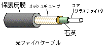 光ファイバーケーブルは、石英やプラスチックで構成された、「コア」と「クワッド」と呼ばれる中心部分を保護皮膜で包んだ構造になっている。