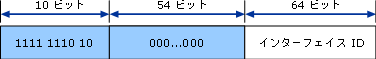 アドレスプレフィックスの上位10ビットが1111 1110 11で、64ビットのインタフェースID部を含むアドレスをIPv6サイトローカルアドレスと呼びます。IPv6サイトローカルアドレスは、同一組織(サイト)内だけで有効なアドレスで、インターネットに接続されていないネットワークで自由にIPv6アドレスを付ける場合に使用されます。