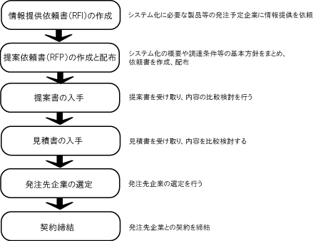 要件定義および社内で定義された内外作基準に基づき、社内でのシステム開発または、外部委託によるシステム開発、既成の製品での対応などどのように調達するかを検討する。 調達の対象、調達の要求事項、調達の条件などを定義し調達計画を作成する。 また、サプライチェーンマネジメントの考え方を応用し、ソフトウェアのサプライチェーンマネジメントを実施する。これは、ソフトウェア、サブプログラムなどを適切に一元管理し、必要に応じて適切な提供先から調達できるようにすること。