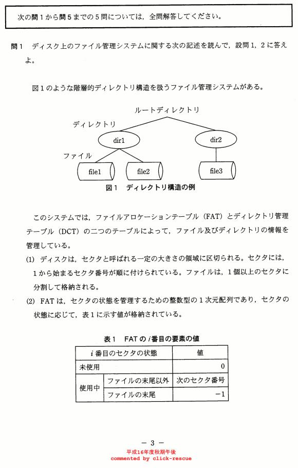 午後問題 表示 - 平成16年度 秋期 問01
