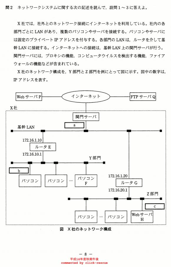 午後問題 表示 - 平成16年度 秋期 問02