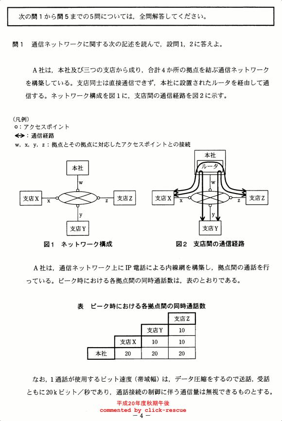 午後問題 表示 - 平成20年度 秋期 問01