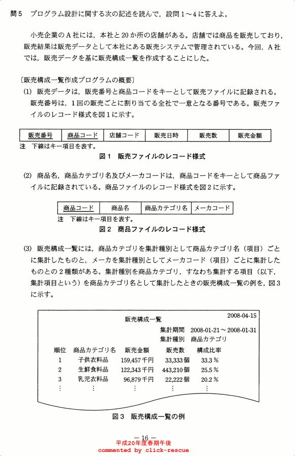 午後問題 表示 - 平成20年度 春期 問05