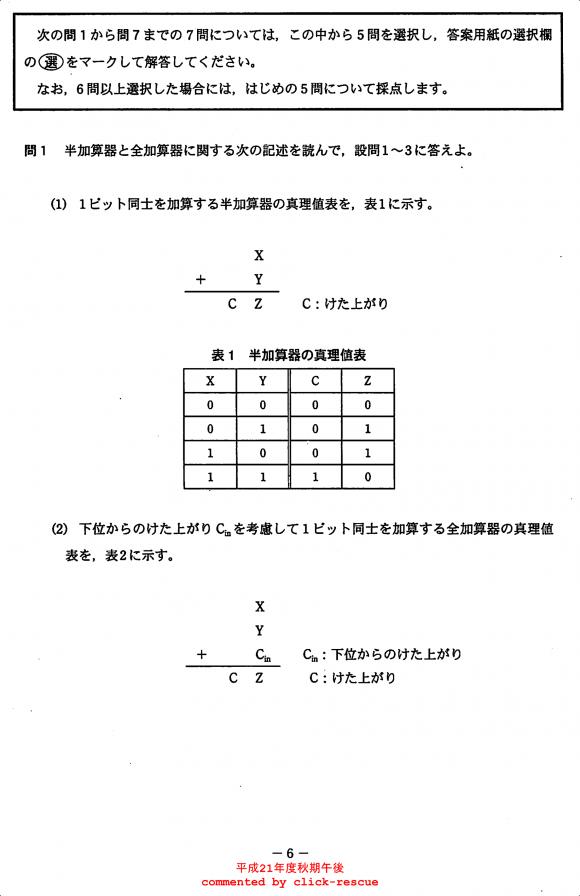 午後問題 表示 - 平成21年度 秋期 問01