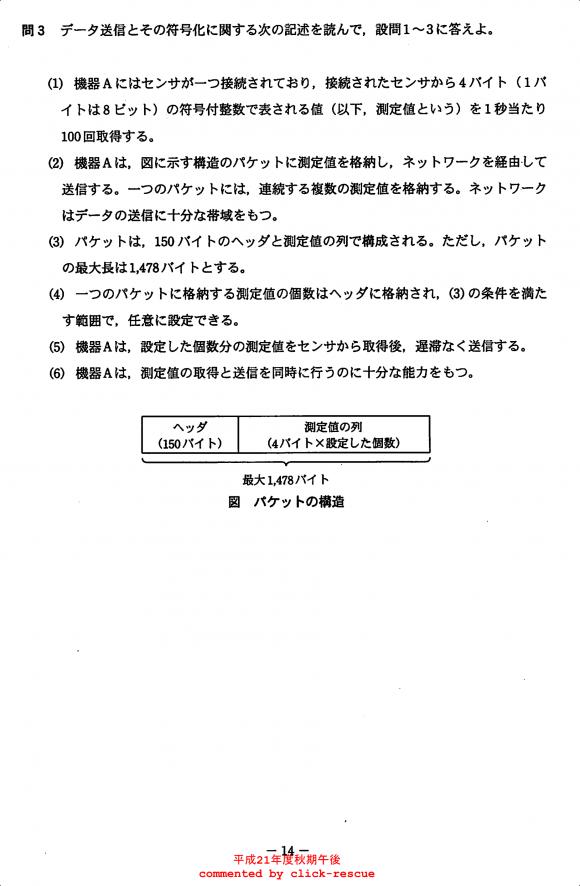 午後問題 表示 - 平成21年度 秋期 問03