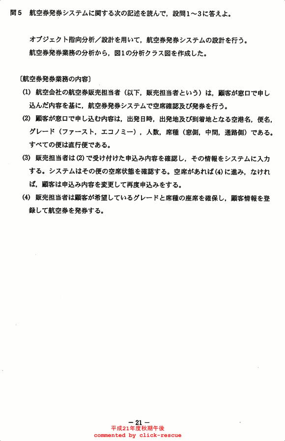 午後問題 表示 - 平成21年度 秋期 問05