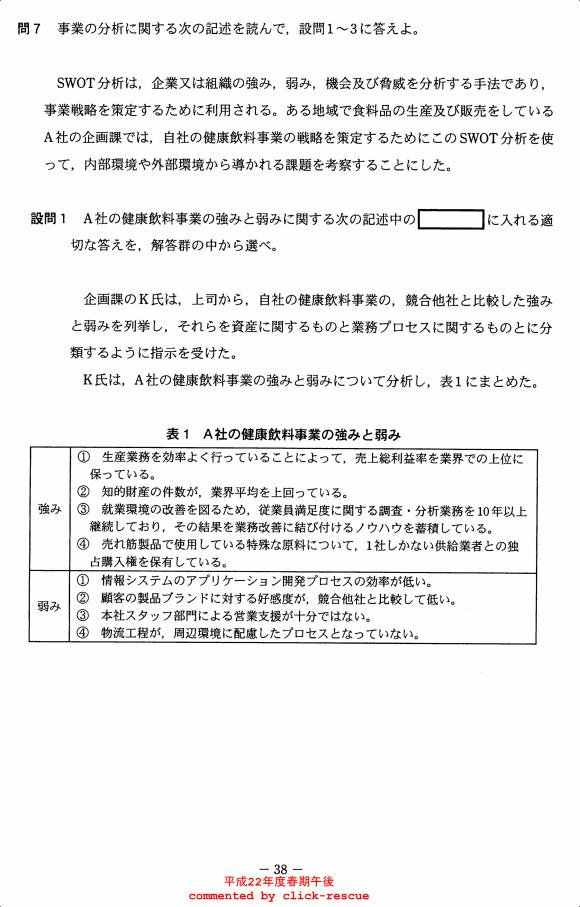 午後問題 表示 - 平成22年度 春期 問07