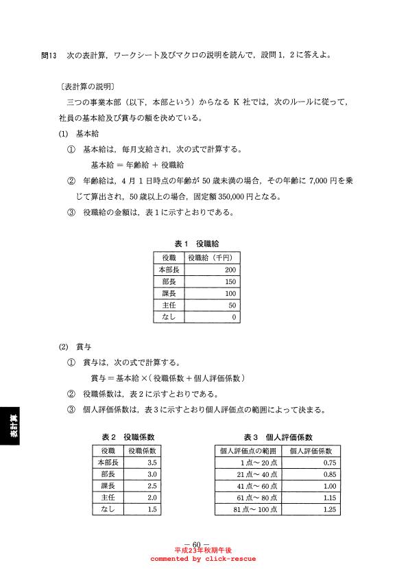 午後問題 表示 - 平成23年度 秋期 問13