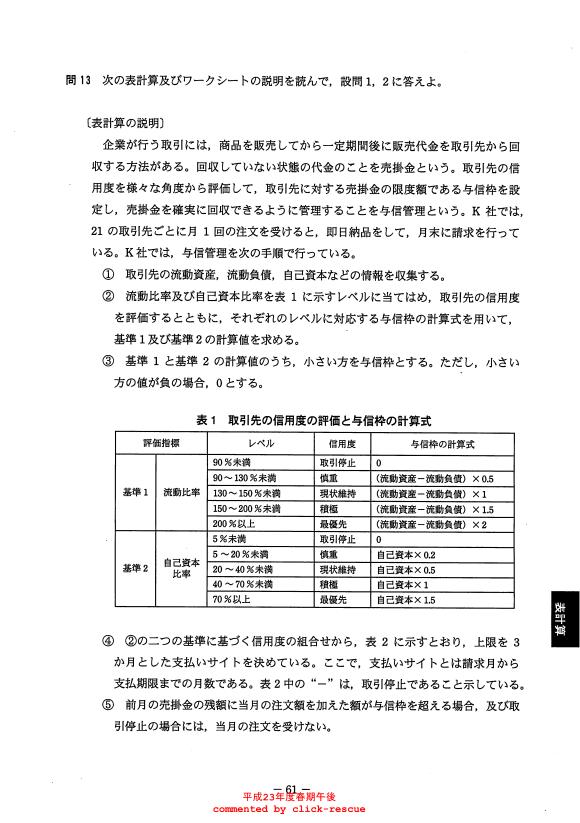 午後問題 表示 - 平成23年度 春期 問13
