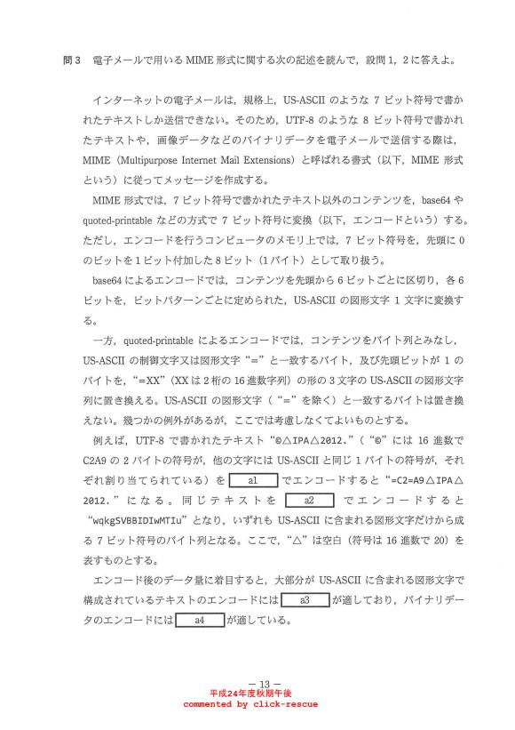 午後問題 表示 - 平成24年度 秋期 問03