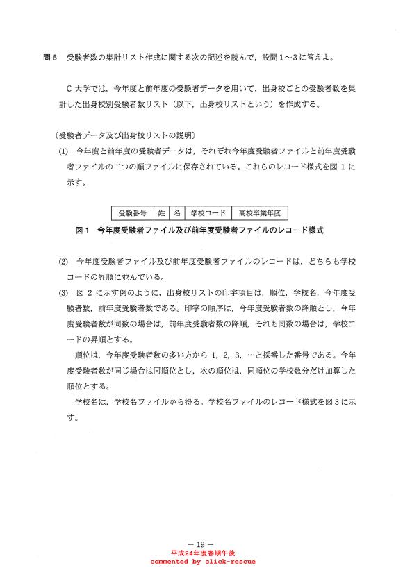 午後問題 表示 - 平成24年度 春期 問05