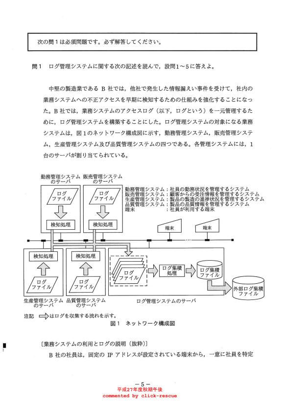 午後問題 表示 - 平成27年度 秋期 問01