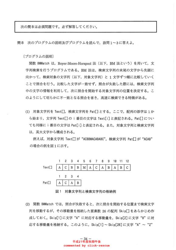 午後問題 表示 - 平成27年度 秋期 問08