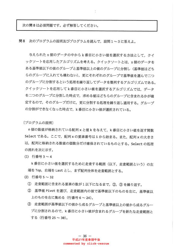 午後問題 表示 - 平成27年度 春期 問08