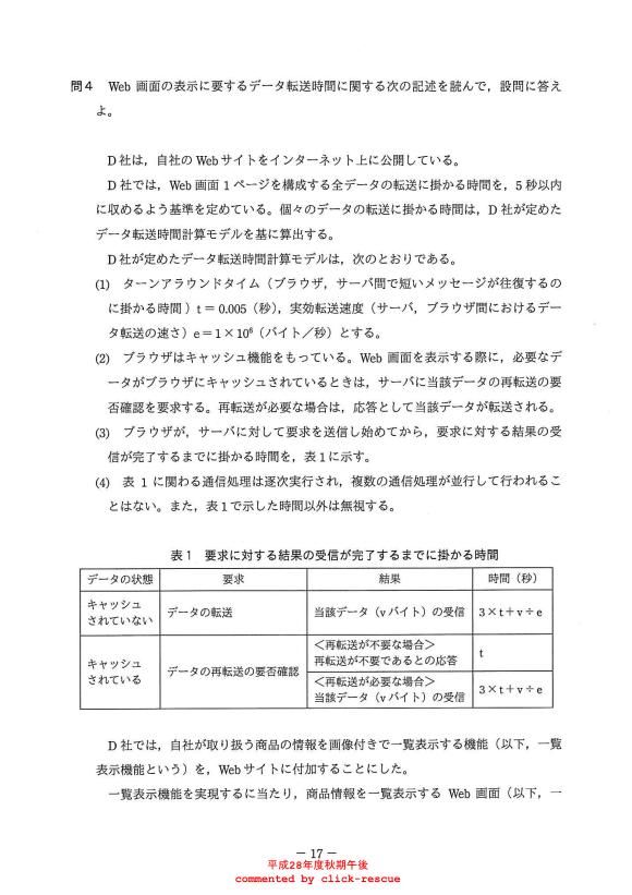 午後問題 表示 - 平成28年度 秋期 問04