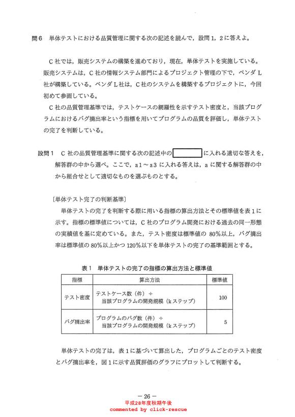午後問題 表示 - 平成28年度 秋期 問06