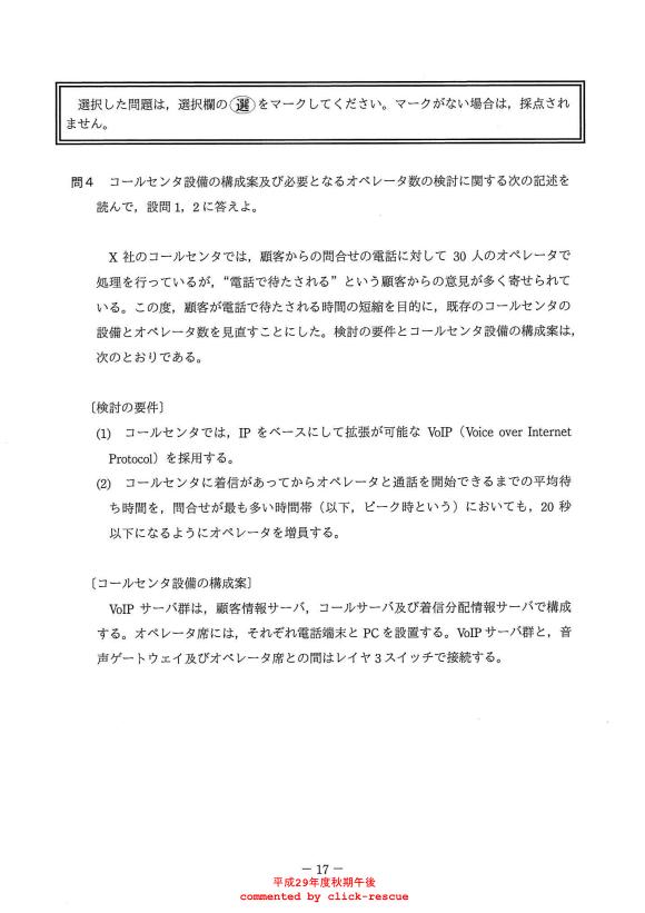 午後問題 表示 - 平成29年度 秋期 問04