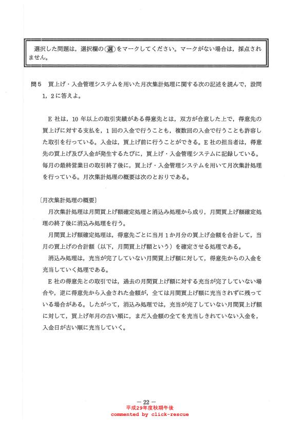 午後問題 表示 - 平成29年度 秋期 問05