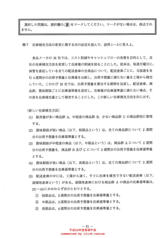 午後問題 表示 - 平成29年度 春期 問07