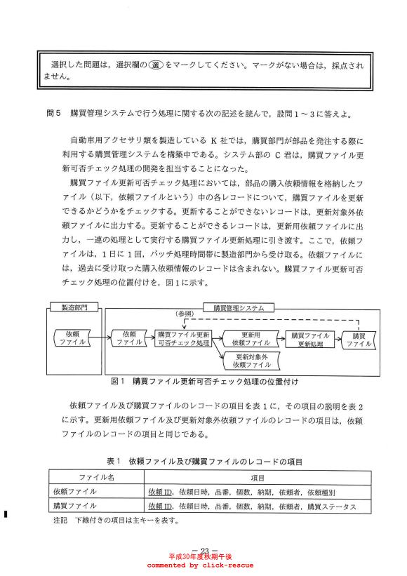 午後問題 表示 - 平成30年度 秋期 問05