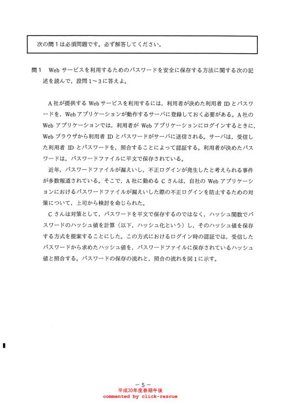 午後問題 表示 - 平成30年度 春期 問01