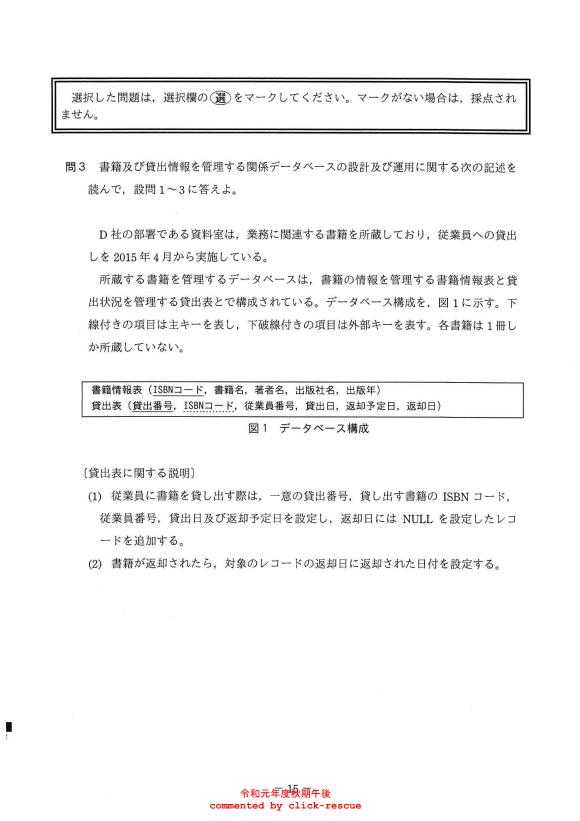 午後問題 表示 - 令和01年度 秋期 問03