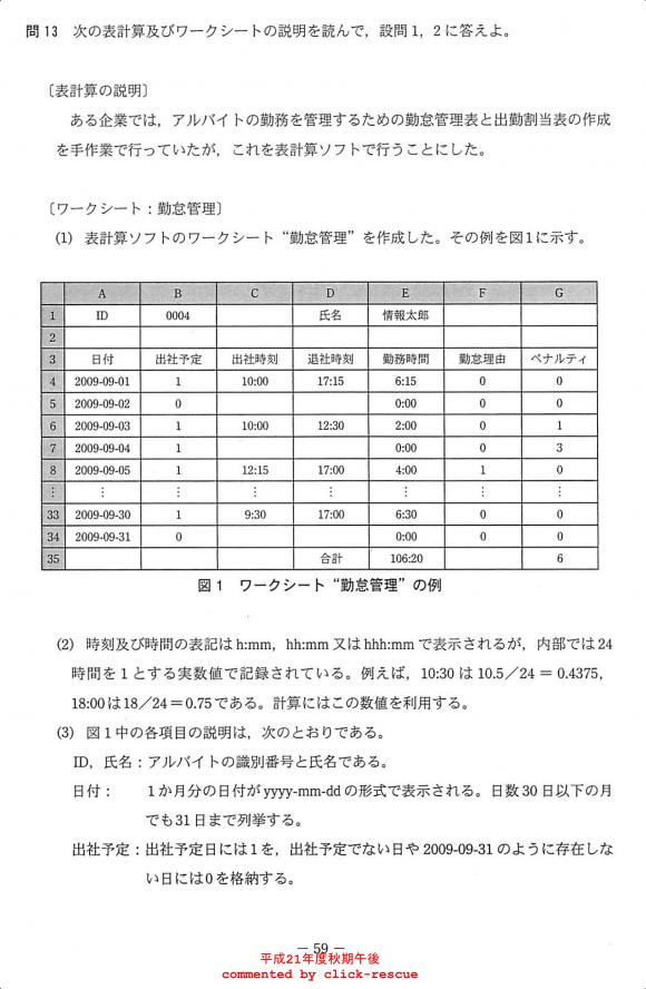 午後問題 表示 - 平成21年度 秋期 問13